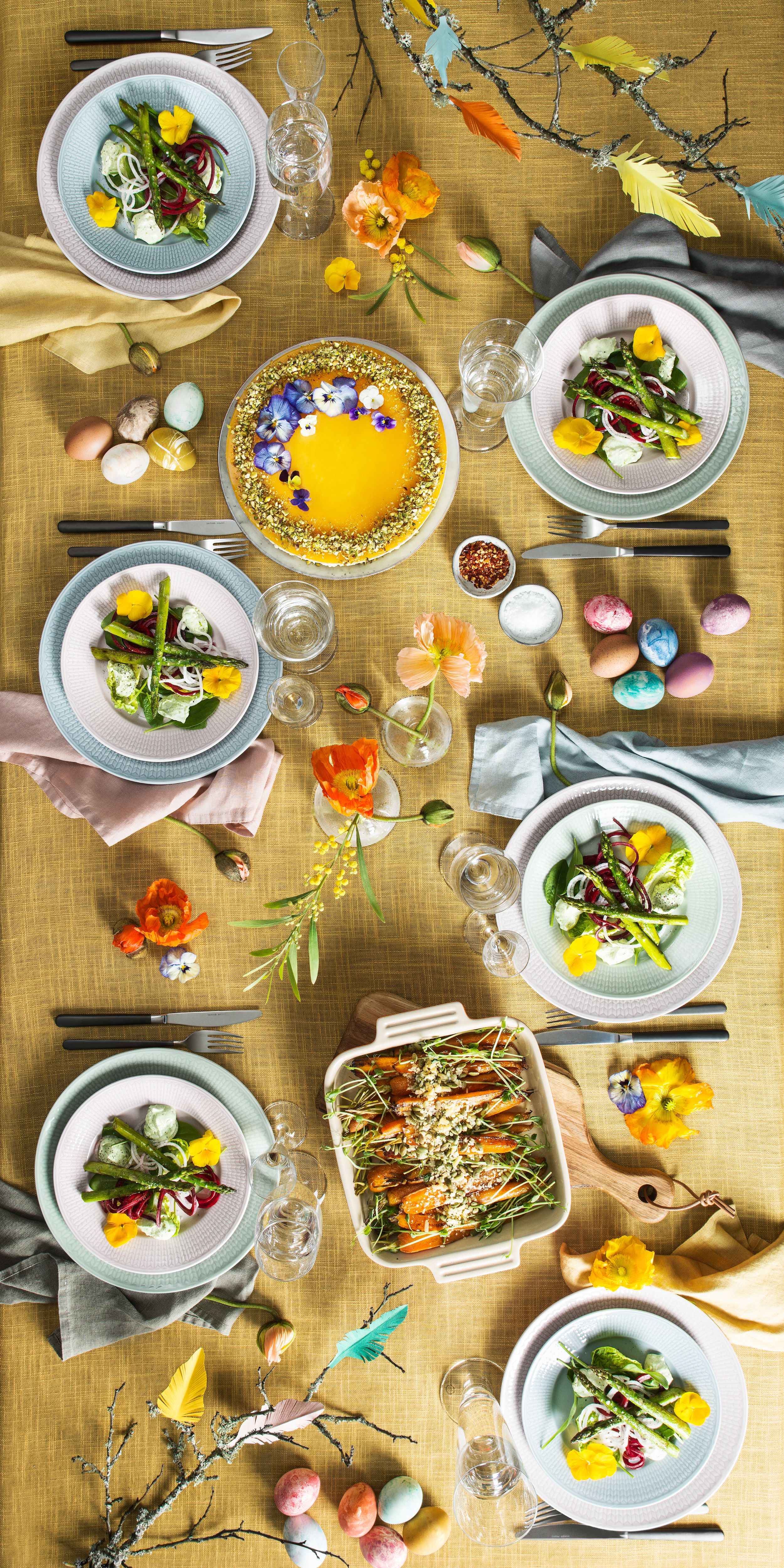 Snart er den etterlengtede påsken her! Vi inviterer nære og kjære til en vårlig middag med smaksrike primører og runder av med en skikkelig sukkerbombe til dessert. Med noen enkle knep holder du anstrengningen (og oppvasken!) til et minimum slik at du kan nyte vårsolen, påskegodteriet og samværet med dine nærmeste. God påske!