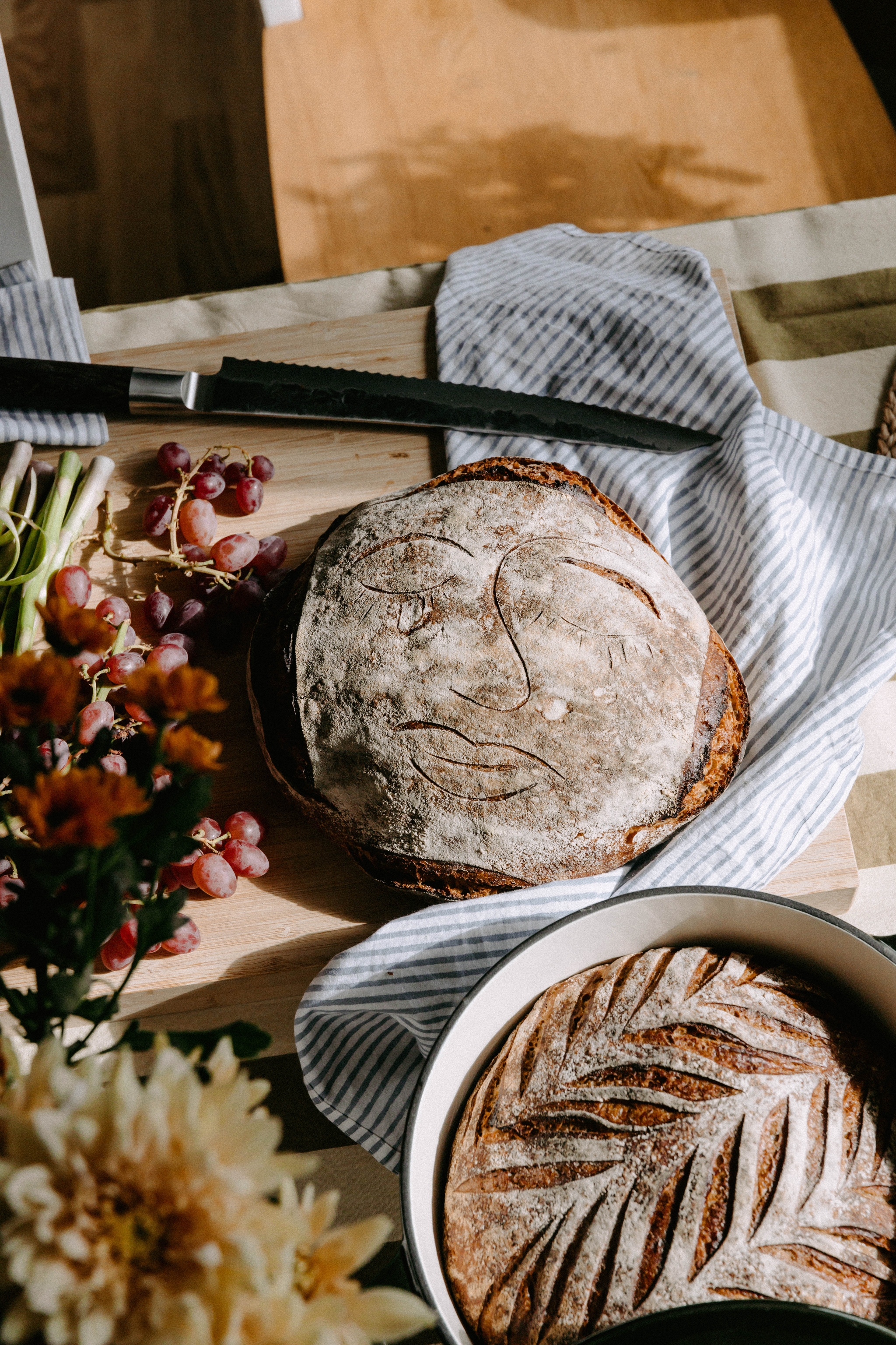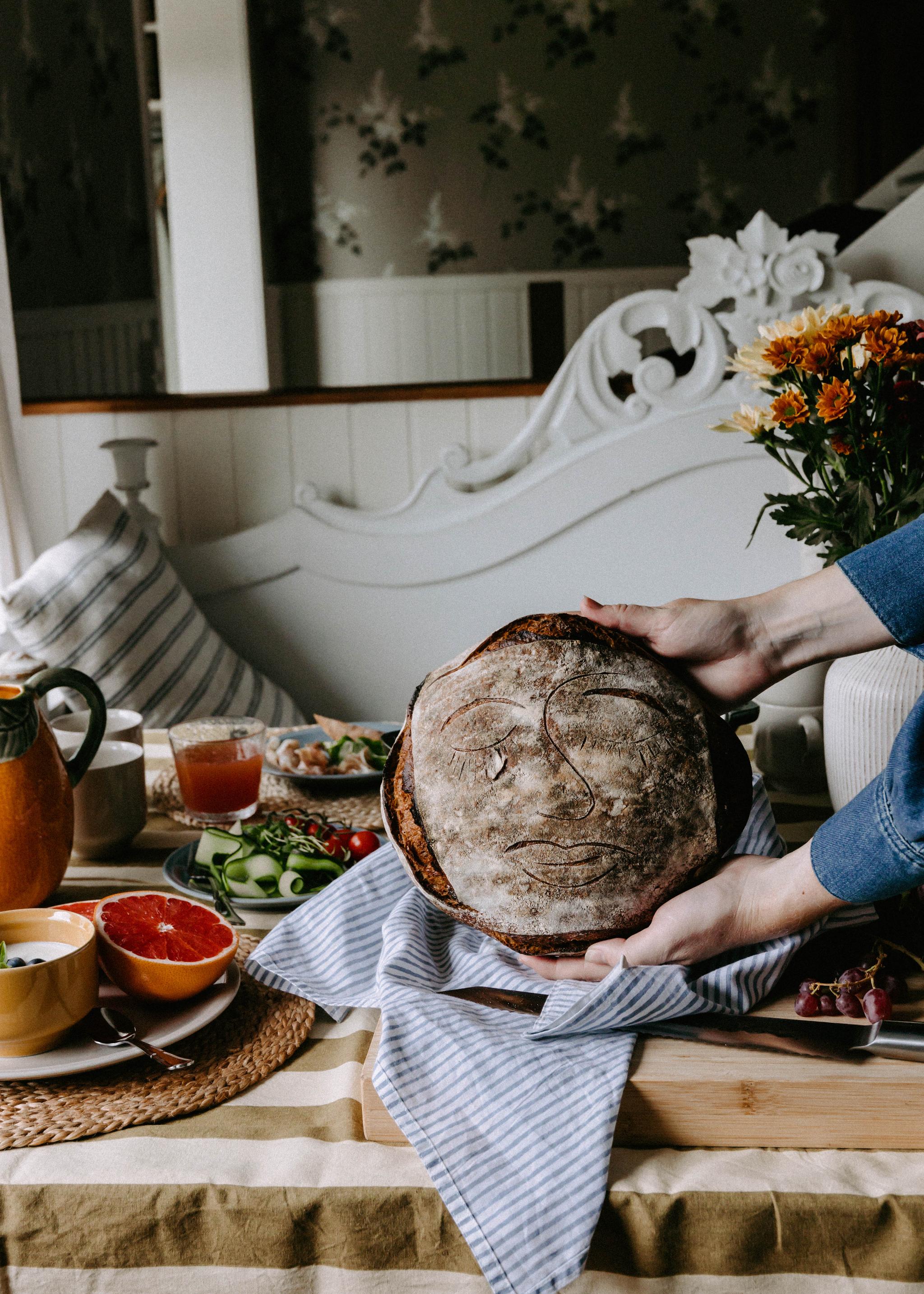 Den største brødtrenden akkurat nå er å lage brød med ansiktsmønster. Det er både lekent og skaper virkelig et minneverdig øyeblikk for dem du samler rundt frokostbordet - og er selvfølgelig også svært fotovennlig! Det krever litt fingerferdighet, men med en god dose tålmodighet og en skarp kniv med en fin egg vil du også klare å lage ditt eget ansiktsbrød. Bare husk å ikke skjære ut mønstrene for dypt. For å forsterke effekten av mønstrene, kan du pudre mel langs linjene med en sil. Hvis et ansikt virker for avansert, senk ambisjonsnivået litt og lag enkle snitt i brødet slik at det blir vakkert bølgeformet i stedet.