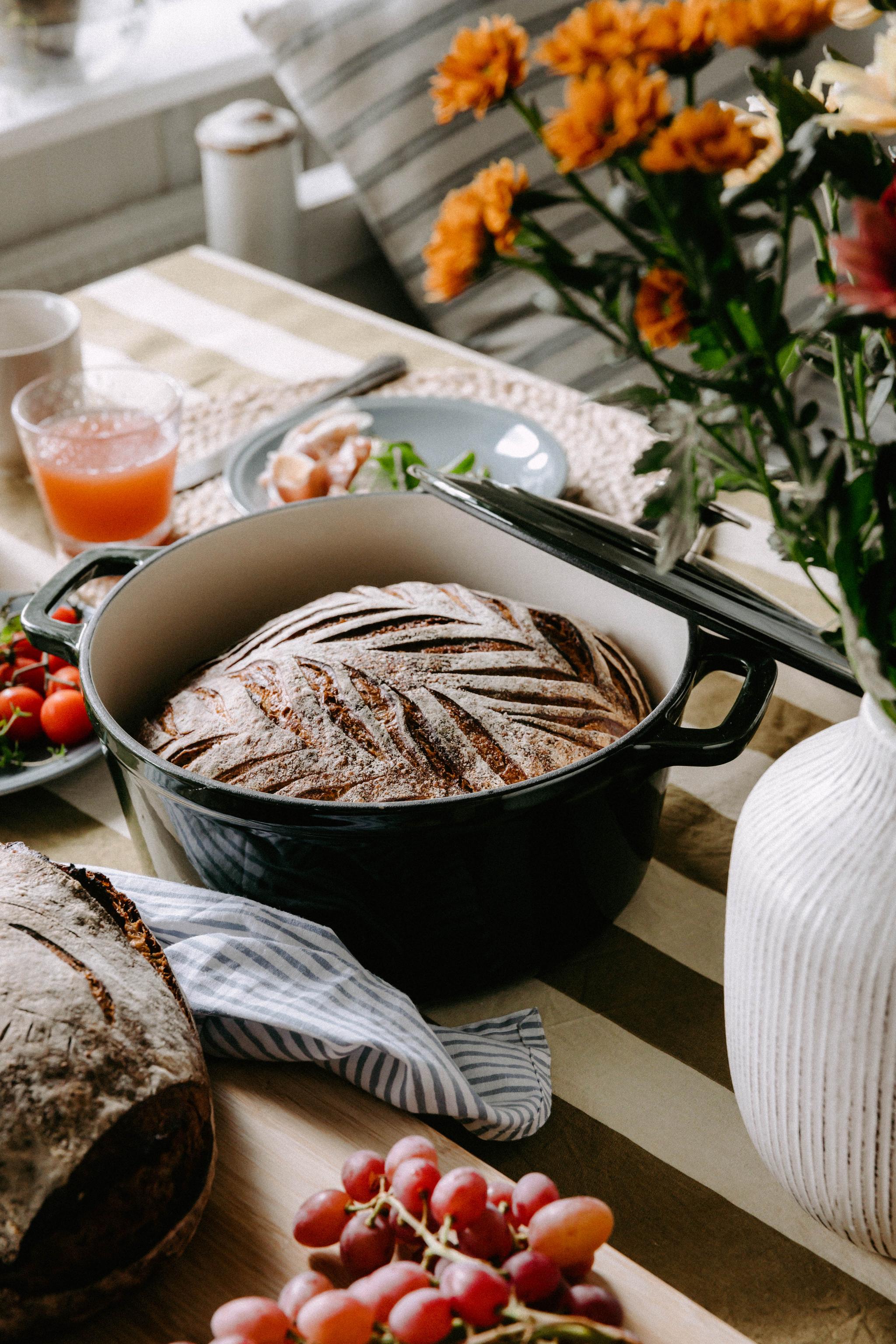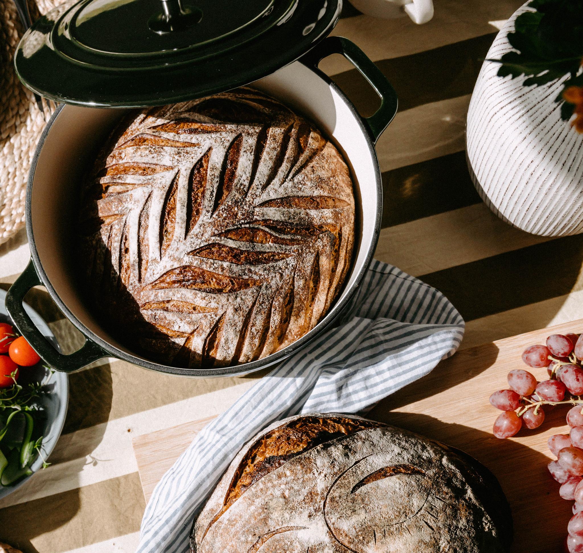 En enkel (og veldig god!) måte å bake brød på er å gjøre det i en støpejernsgryte, noe som har blitt stadig mer populært de siste årene - og som viser hvor allsidig en støpejernsgryte er. Støpejernsgryten fungerer som en miniovn og hjelper til med å skape en sprø skorpe og myk innside på brødet. Men hvordan gjør man det egentlig? I denne oppskriften gir vi deg alt du trenger å vite for å bake det perfekte støpejernsbrødet i en støpejernsgryte.