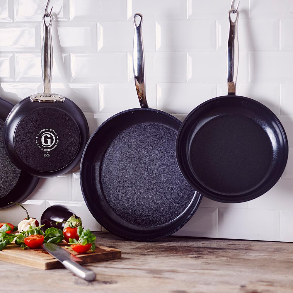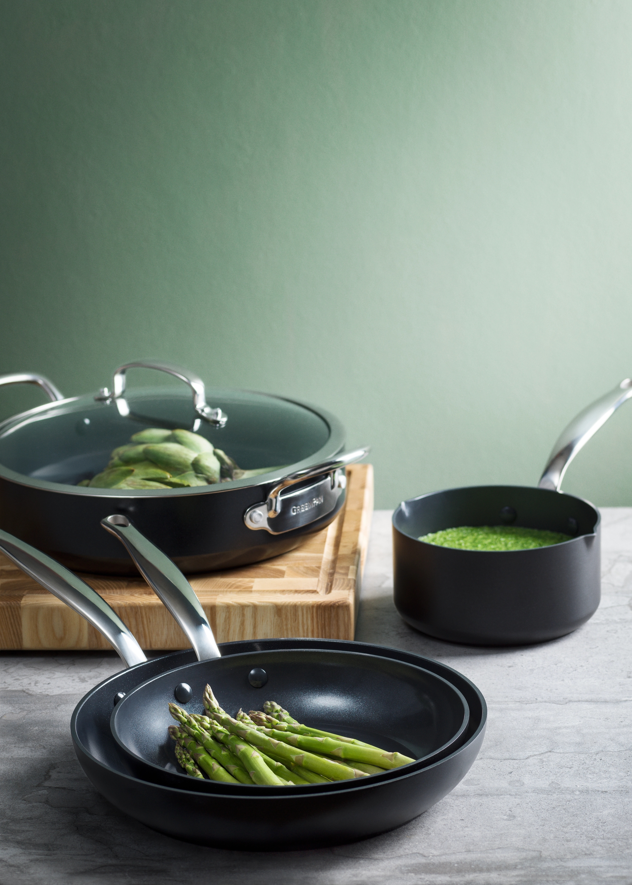 Kolleksjonen Copenhagen fra GreenPan kjennetegnes av et minimalistisk design, materiale av høyeste kvalitet og en ekstra stor stekeoverflate.