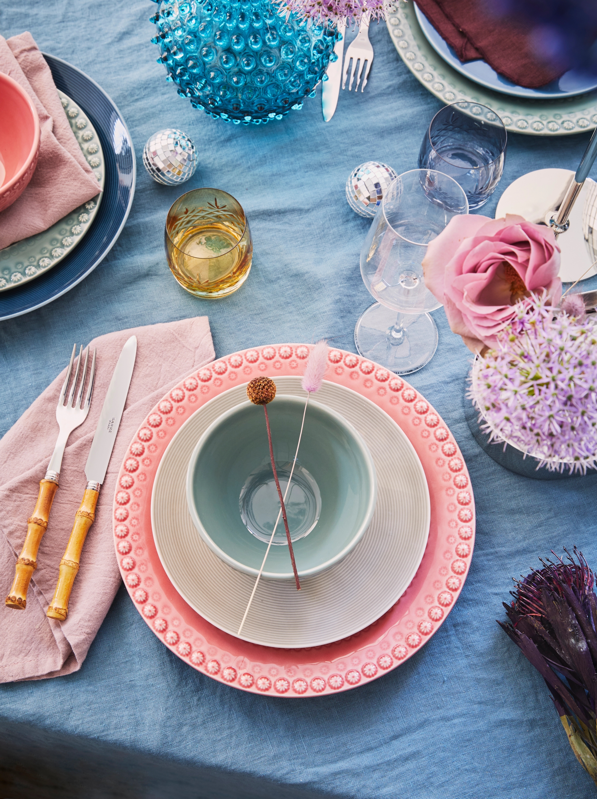 - Maks uttrykket i borddekkingen din og tør å kombinere uventede og sterke farger med hverandre for å skape et uttrykk med skikkelig karakter.