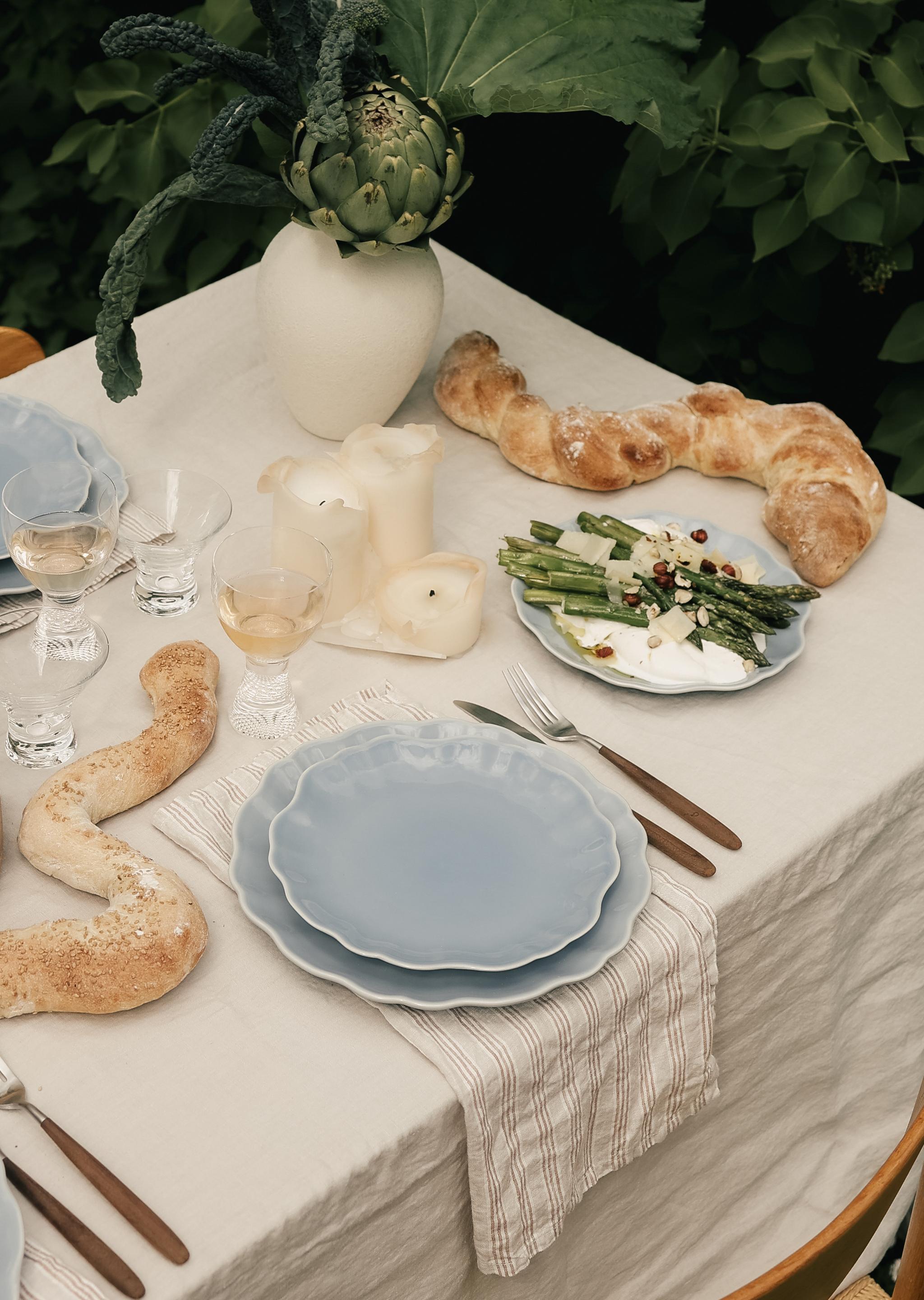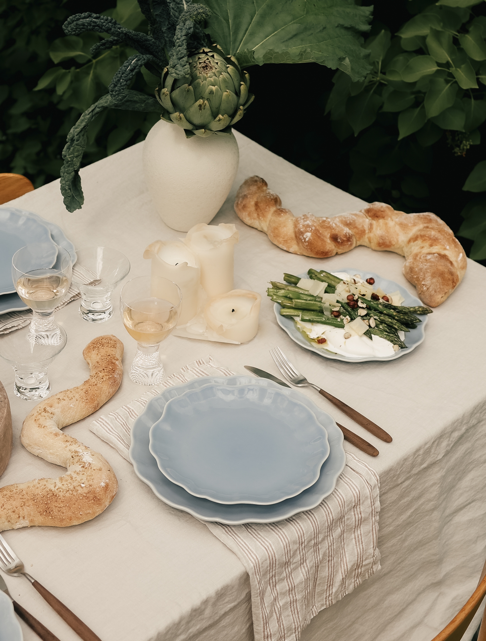Inviter hjem venner og familie til en sensommerfest for en catch-up etter ferien! Dekk på med alt som innhøstingen har å tilby - hvorfor bare spise primører når du faktisk også kan dekorere med dem? Hvorfor ikke lage en trendy lysestake av et kålhode eller bygge luksuriøse og dekorative tårn av rosenkål? Apropos tårn - en av de største trendene på det dekkede bordet akkurat nå er more is more. Det skal være mye av alt. Hvis du skal ha smør til det nybakte brødet, sørg for å bygge et luksuriøst smørtårn som du pynter med for eksempel salvieblader. Men husk - vær svinnsmart her og ikke kast smørrestene. Bruk dem til for eksempel å bake noe neste dag.