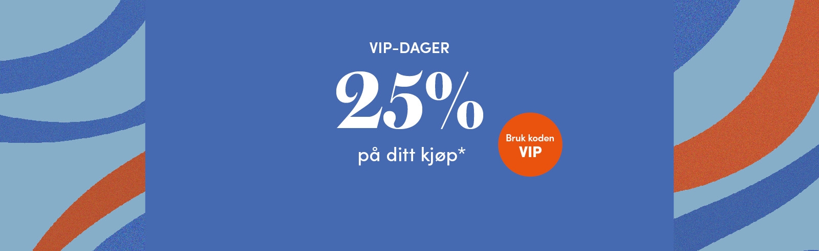 Akkurat nå får du 25% på ditt kjøp*. Bruk rabattkoden VIP i kassen for å benytte deg av tilbudet. Gjelder t.o.m. 12. januar.