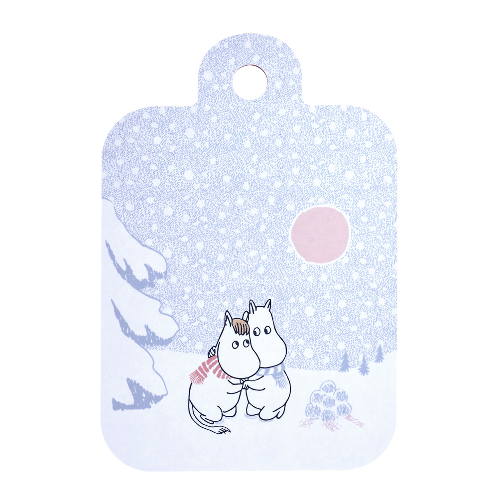 Mummi skjære- og serveringsbrett 21x30 cm la det snø er et praktisk og allsidig kjøkkenredskap med et sjarmerende design inspirert av Mummi-universet. Dette brettet er laget av bjørkefiner med melaminlaminering, noe som gjør det både holdbart og enkelt å rengjøre i oppvaskmaskinen. Du kan bruke dette brettet til å tilberede maten på den ene siden og deretter servere den på den andre siden. Med motiv på begge sider får du muligheten til å veksle mellom ulike uttrykk på kjøkkenet.