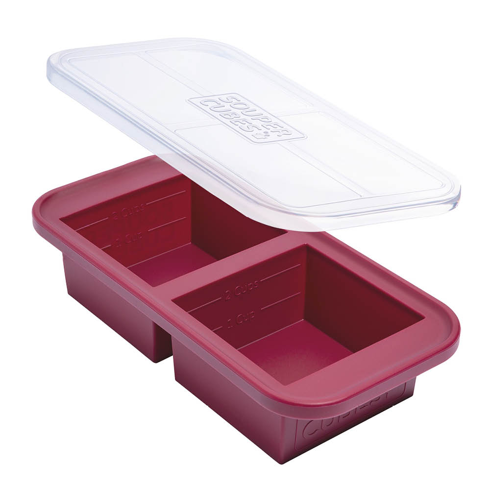 Oppdag Souper Cubes matoppbevaringsform med lokk, 2-cup (2x500 ml) – en funksjonell løsning for porsjonsfrysing. Formen er laget i 100 % Platinum silikon og har tydelige innvendige målangivelser, slik at du enkelt kan porsjonere alt fra supper og sauser til deig og ferdige måltider.